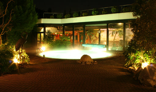 Spontan beschließen wir, ein wenig im dampfendem Pool im Garten zu entspannen. Diesen Pool erreicht man sowohl von innen als auch von außen. Massagedüsen befinden sich am Beckenrand, eine sehr schöne Einrichtung. So kann man es sich am Beckenrand richtig gemütlich machen und sich vom Massage-Strahl "durchkneten" lassen. Mittlerweile ist es auch schon dunkel und der Garten erstrahlt in einem wunderschönem, warmen Licht durch die liebevoll angebrachte Weihnachtsdekoration. Mit so einer wundervollen Aussicht lässt es sich wirklich leben.