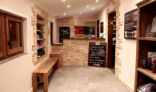 Wir betreten den Eingangsbereich, der uns sehr gut gefällt. Viel Naturstein und Holz dominieren hier. Ein netter Mitarbeiter begrüßt uns sehr freundlich und übergibt uns unsere Schrankschlüssel. Danach gibt er uns einen kleine Einweisung, so haben wir schnell die wichtigsten Informationen über die Birkensauna erhalten. Alle Leistungen des Hauses werden auf die Schlüsselnummer gebucht und dann inklusive Eintritt beim Verlassen des Hauses beglichen.