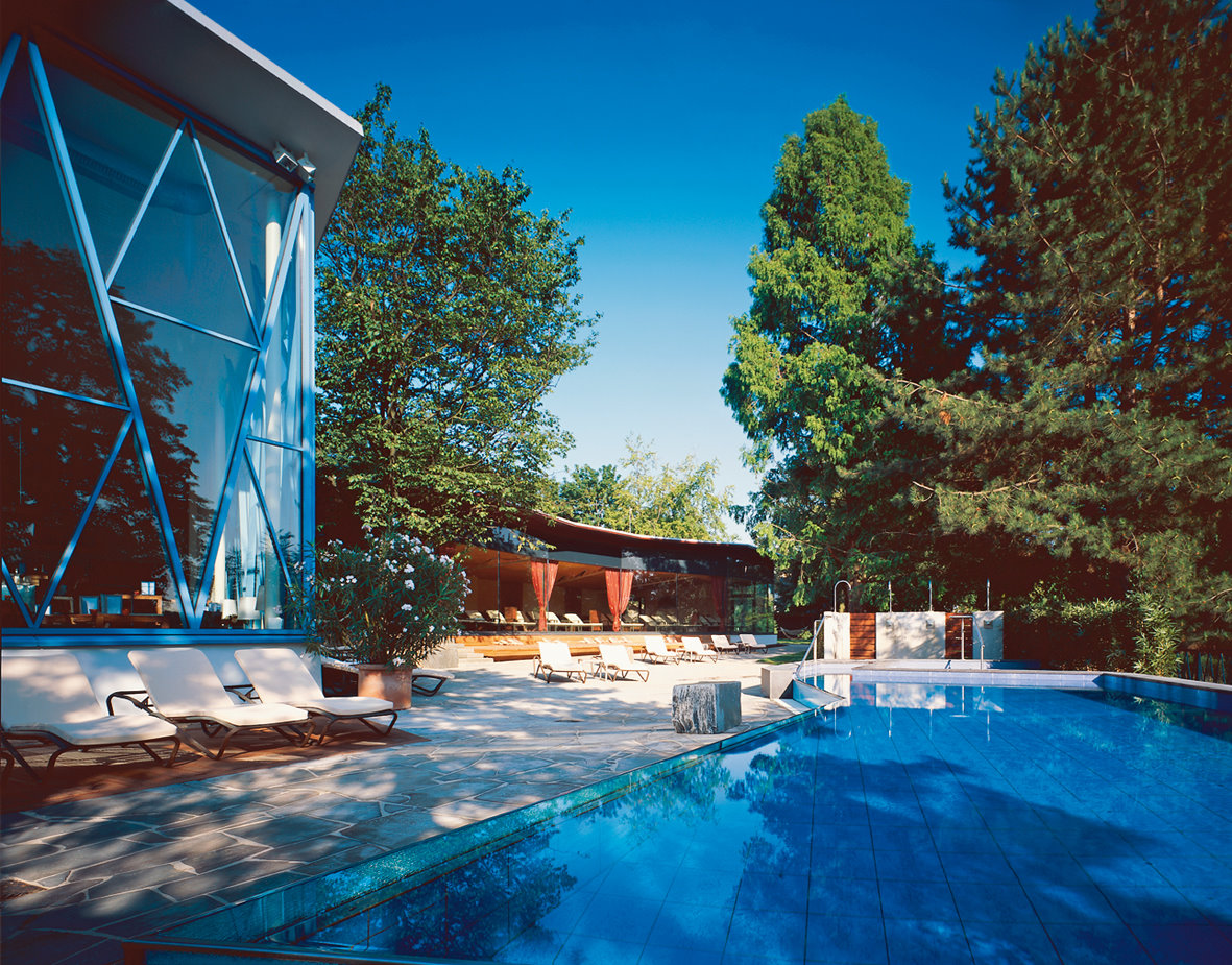 Wir stoßen auf die schönen Rosenterassen im Außenbereich mit einer Rosensauna, einem großem Ruheraum, einem Rosen-Café, einem Schlafraum mit Wasser-Matratzen, einem weiteren kleinen Ruheraum, einem großen Terrassenpool, sehr viele Liegemöglichkeiten auf gepflegten Wiesen in der Sonne sowie in schattigen, schönen kleinen Pavillons. Zu den Rosenterrassen gehören ebenso die Day-SPA-Suite, ein Aquarien-Ruheraum sowie ein Schwebebecken mit 15%iger Sole. In diesen Genuss kommt man allerdings nur gegen Aufpreis.