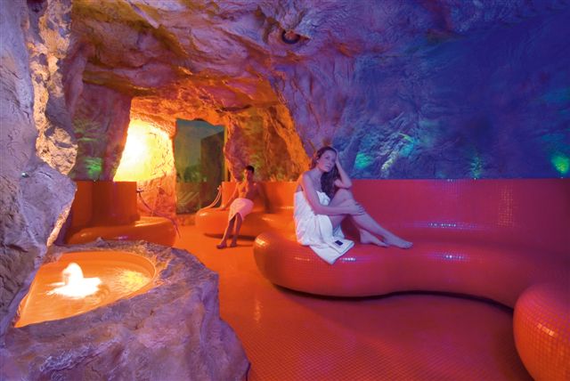 Dampfbad - Durch den abgedunkelten Raum mit edlen Steinwänden und -bänken wabern die Nebelschwaden mit einer Temperatur von 40 bis 48° C und entschlacken Haut und Atemwege.